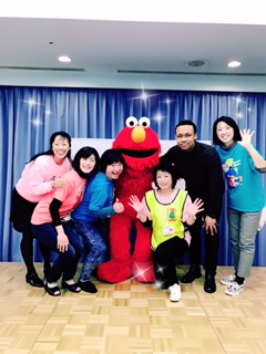 先生方とネイティブの先生、そしてエルモと一緒に記念写真!!
