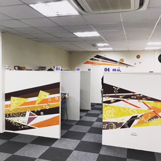 低い壁で仕切られた小部屋(先生方はcubiclesと呼んでいます)