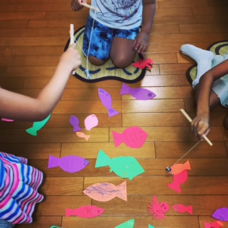 ②わりばしにマグネットをつりさげた釣り竿で、魚釣りを楽しもう!