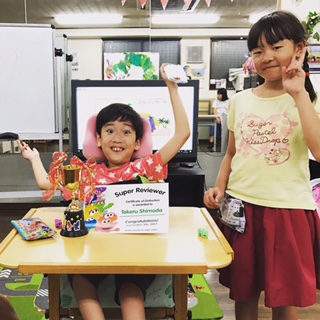 日頃のがんばりに敬意を表し、東進こども英語塾本部から表彰状と記念の腕時計を、