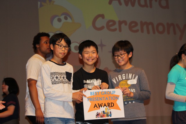 おかげさまで、個人スピーチ、グループでの絵本暗唱、グループプレゼンテーションの全部門で表彰をいただくことができました。